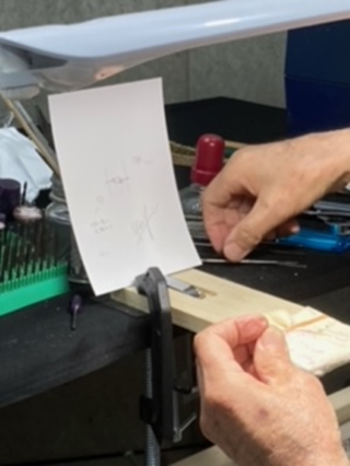 打ち合わせで固まったばかりの新しいジュエリーのイメージを、山口さんがその場で形にしました。