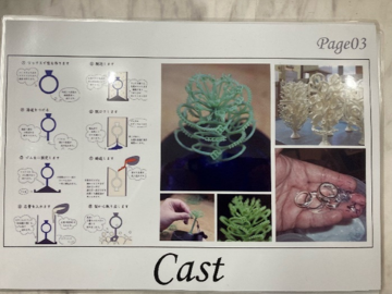 この空洞部分に溶かした地金を流し込むと、ジュエリーの形がほぼできあがります。
