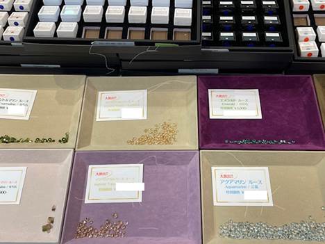 宝石ガチャや、皿に載せられたルースの特売などを眺めながら、お店を見てまわりました。
