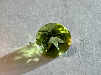 ペリドット(こちら参照)は、ありふれた宝石という印象があるのと、小粒ながらそこそこの量が(過去の発注誤りで)手元にあることから、いつもだとスルーしているのですが、照りときらめきが美しいルースが目に留まり、買って帰ることにしました。