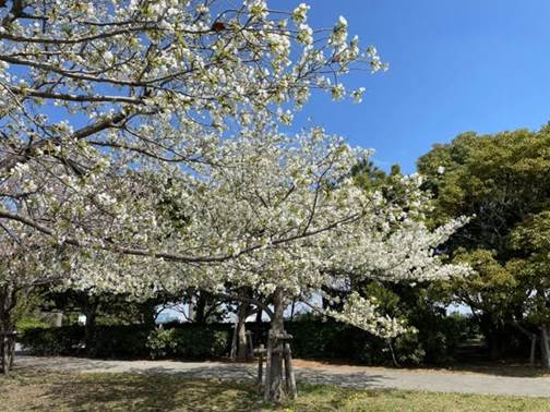 公園の桜を見ると、ソメイヨシノは散り始めていましたが、オオシマザクラは満開でした。