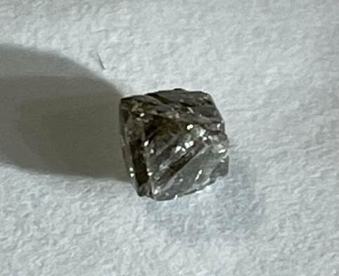 ダイヤの自然な結晶の形である八面体で、切り出したままの原石です。採掘されたときのダイヤがどんな姿をしているのか、近いイメージがつかめて面白いので買って帰りました。