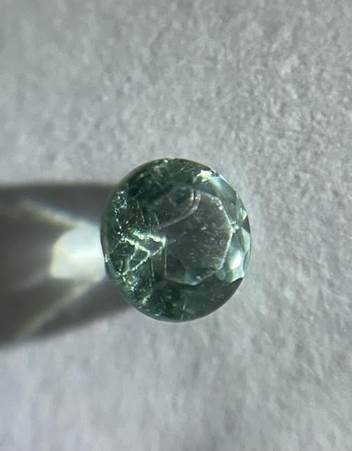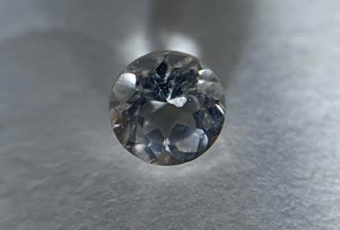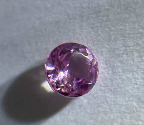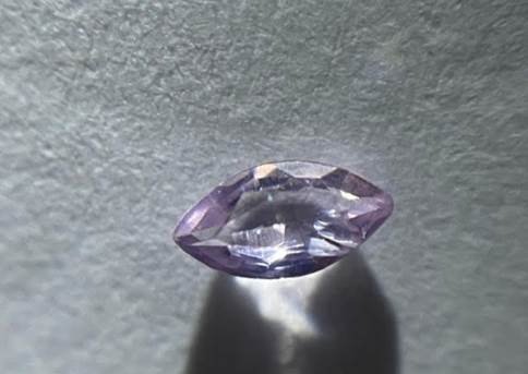 微量のマンガンが入って淡いピンク色に光る宝石で、エメラルドと同じベリルという鉱物の一種です。LED照明下で、iPhoneで撮影すると、写真ではほぼ無色のように見えます。
