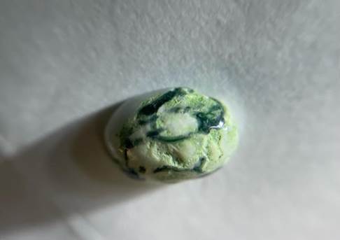 家に帰ってから、写真を撮ろうとLEDライトの光を当てて初めて気がついたのですが、光の角度によって、遊色が青、赤、緑と移り変わって実に綺麗です。