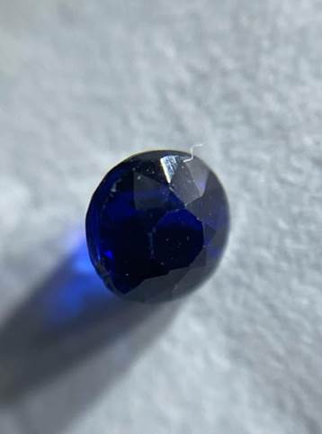 この石はこれまで見てきたカイアナイトの中で最も青が濃く、普通の照明の下だとほぼ黒に見えます。