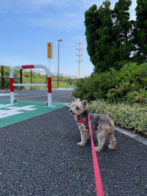 行き合うわんこにも積極的にコンタクトを取っていて、おとなしそうなわんこが引き気味なのに、ルビーがぐいぐい近づいて匂いを嗅ごうとするので、飼い主さんに「元気ですねぇ☺️」と笑われたりしました。