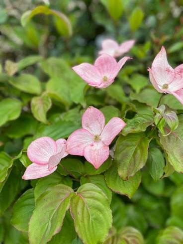 あまり植えているのを見かけないピンクの花のヤマボウシが近所にあったのを見つけました。