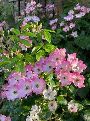 つるバラの「バレリーナ」も花盛りです。