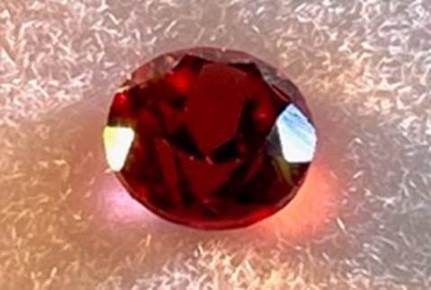 ガーネットの赤は結晶の内包物(インクルージョン)によるものですが、この花の真紅は、いわゆる黒薔薇と同じように、濃い赤の花弁が、花弁表面の構造の特徴によってさらに深みを増したもののようです。