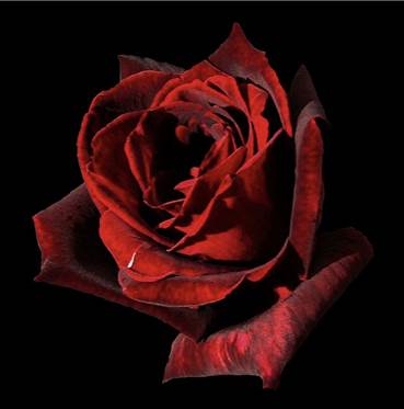 黒薔薇などの場合、花弁の表皮細胞が通常より垂直に細長く、光が当たったときに表皮細胞の影ができるため、赤色が深みを帯びて黒っぽく見えます。