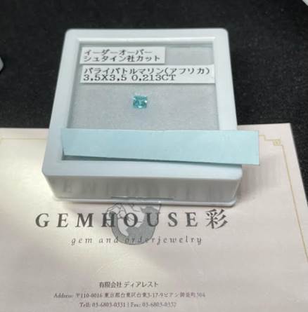 ◯パライバトルマリン 0.21ct プリンセスカット アフリカ産 イーダーオーバーシュタイン社のカット