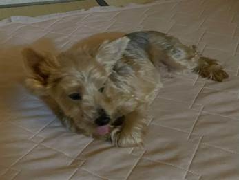 夜遅くなるとルビーは、寝室に使っている畳の部屋に行き、敷かれた布団に乗って、家族が来るまで待っていることが多いです。