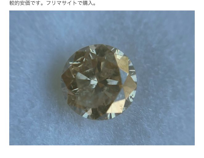採掘されるダイヤモンドの大部分はブラウンだそうで、ブラウンダイヤは比較的安価です。フリマサイトで購入。