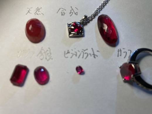 最初の写真の右下は、イミテーションのルビーの指輪です。寺尾聰もびっくりの値段で買ったものなので、おそらくただのガラスだと思います。