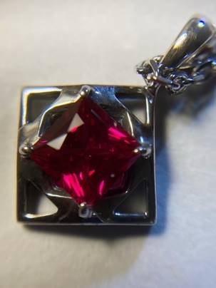 写真のネックレスは、京セラが出しているクレサンベールというブランドの合成ルビーです。不純物がなくクリア過ぎるということを除いて、高品質のルビーと見分けはつきません。