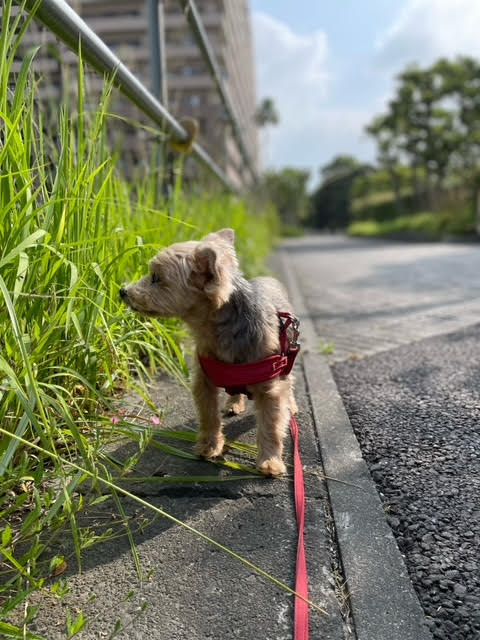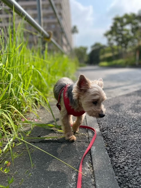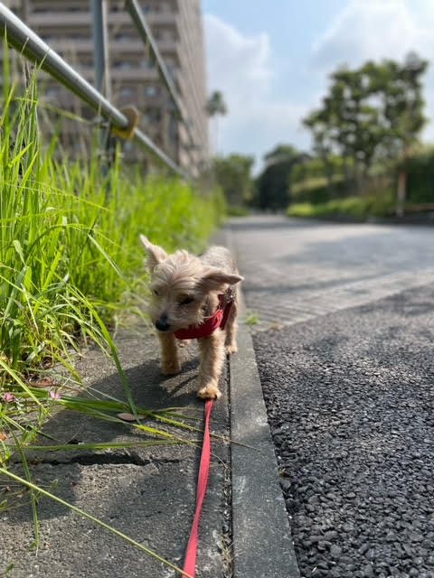 ルビーとの朝散歩は涼しいうち、できるだけ早い時間に出るようにしています。