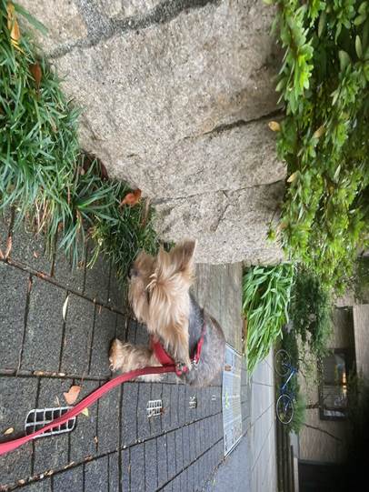 朝の散歩に出たときにはまだ地面は濡れていて、匂いが流されたのか、ルビーは地面に鼻を近づけて、微かな匂いをたどるように歩いていました。