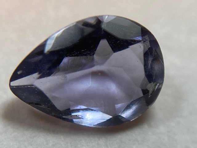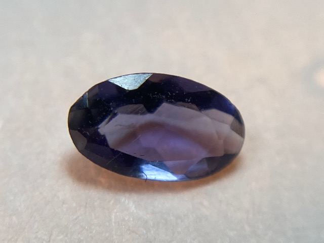 アイオライトは、含有する鉄分によって、名前のとおりの青を発色します。スミレ色の混ざった深い青がトップカラーとされています。