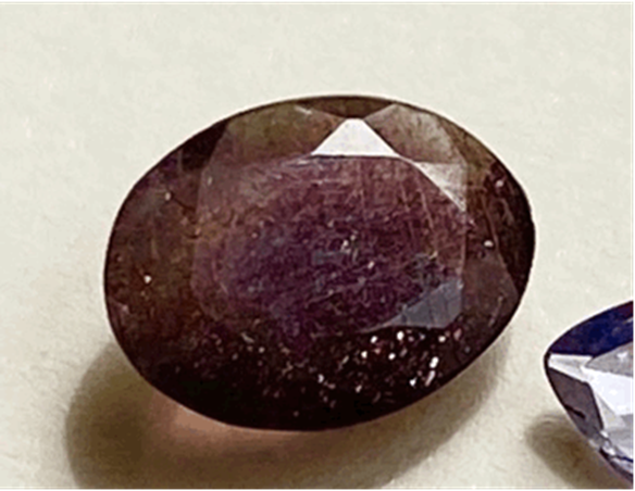 アイオライトの結晶に、鉄分豊富なレピドクロサイトなどのインクルージョン(内包物)が含まれることがあります。
