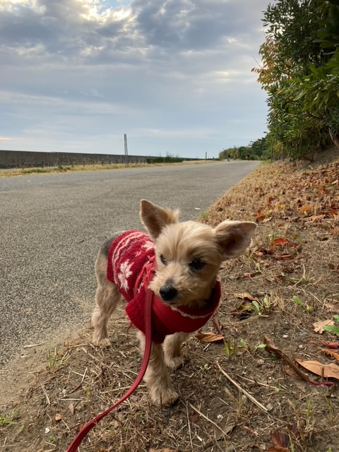 今朝のルビーは元気いっぱいで、とっとこ小走りで住宅地を抜けて、海沿いの道まで引っ張ってこられました。
