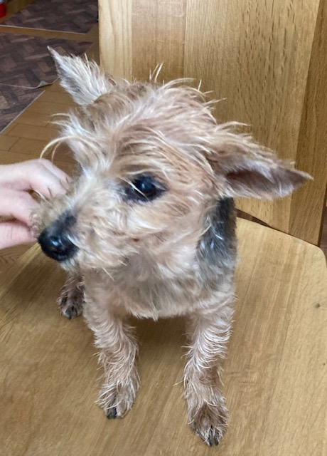 昨日風呂場で洗われて、ルビーのテンションがガクッと下がっていました(乾燥中の写真)。