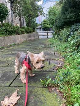 ルビーは元気に歩き始めたのですが、思ったより寒かったせいか、散歩の途中でコースを変えて家に戻ってきました。