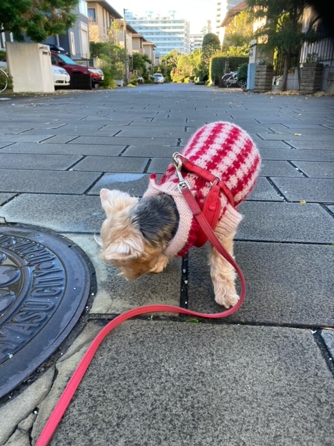 まだ濡れている路面を、ルビーがしきりに嗅いでいました。