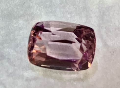 光学的特徴としては、強い多色性があり、見る方向によって、無色から薄ピンク、ピンクなどに色が変わります。ただし、ピンクの濃淡の範囲での変化であり、あまり変化する印象にはなりません。