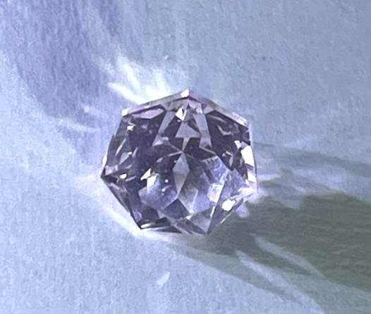 なお、淡いピンクで、珍しいヘプタゴン(7角形)カットのYAGも同時に購入しました。