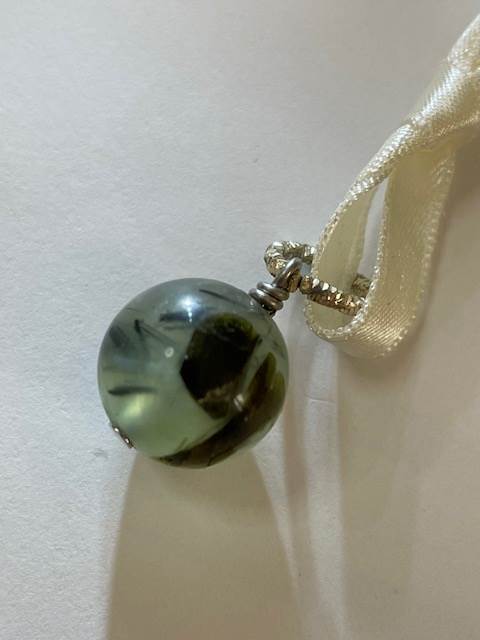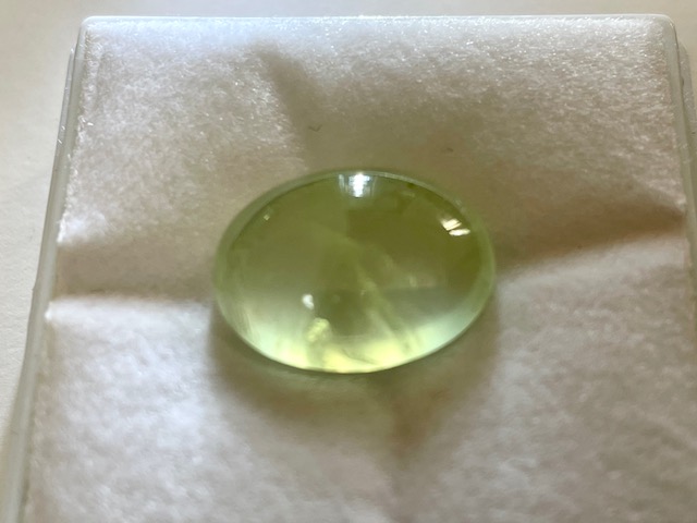 カボションカットで薄緑の石だとマスカット感が強いですね。