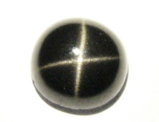 スター効果のあるダイオプサイドは、ほぼ黒に近い不透明な石で、4方向に十字状のスターが見られます。