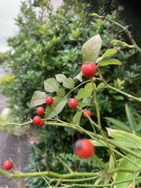 秋が深まっていく中で、つるバラやシャリンバイの実がなっていました。