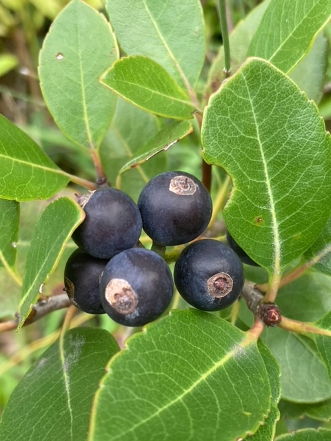 シャリンバイの実は人間の目には黒く見えますが、哺乳類と違って色覚が退化しなかった鳥たちには、きっと冬を迎える前の貴重な食事のありかを示す、深く鮮やかな色に見えているのでしょうね。