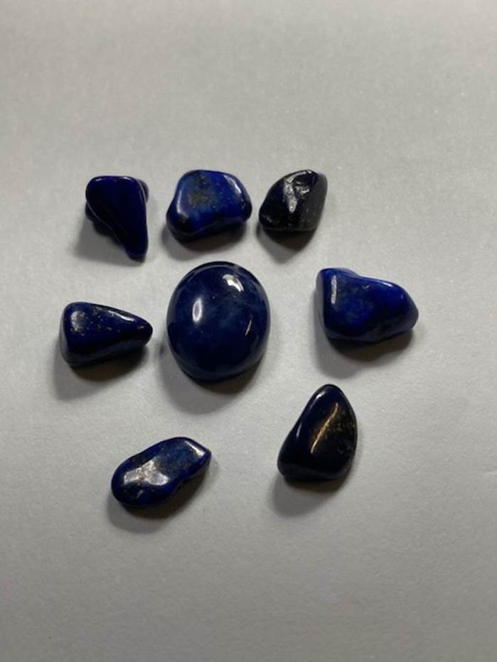 ラピスラズリの青は、主要成分であるラズライトや微量に含まれるアウイン(アウイナイト)やソーダライトによるものと考えられています。