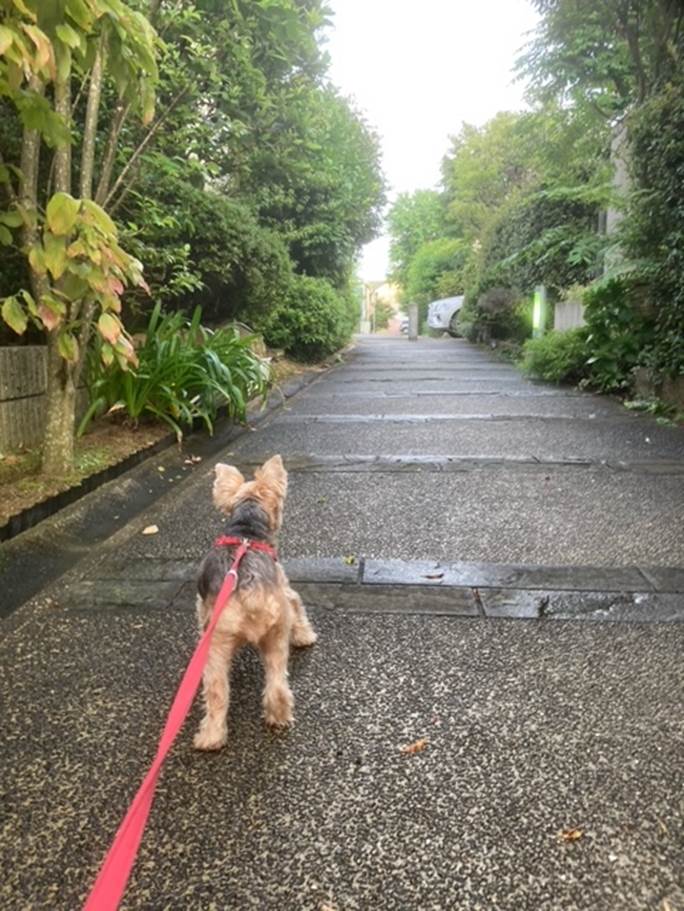 け方から雨でしたが、朝起きた時にはちょうど止んでいたので、ルビーを連れて外に出ました。