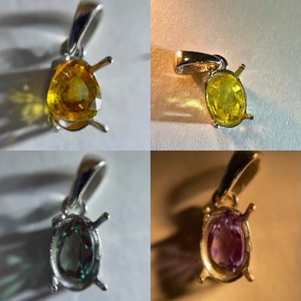 ペンダントトップの空枠にセットする石の候補について、家族にも意見を聞きました。
