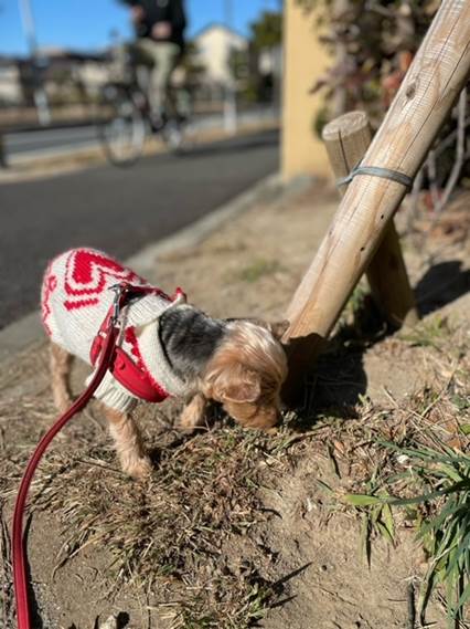 朝のルビーは心なし弾んだ足取りで、いつもの散歩コースを一回りしてきました。