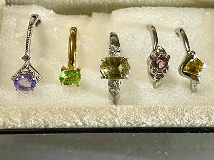 Cと同時に購入した指輪から、元々付いていたキュービックジルコニアを外し、同じサイズのイエローベリルをはめ込みました。付け外しの負荷で取り付け用の爪(プロング)が折れてしまい、接着剤で固定しています。
