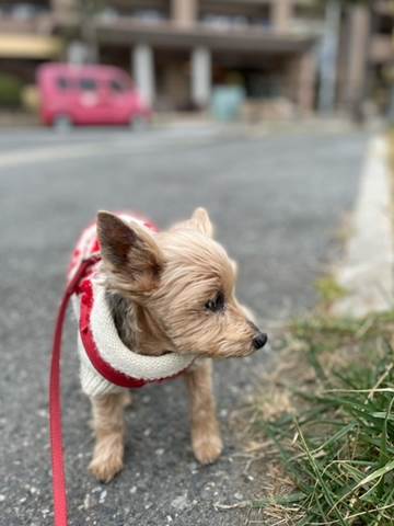 今日は曇り空でした。白々とした陽光の下でルビーと散歩に行きました。セーターはしっかり2枚重ねで。