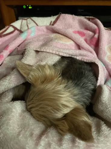 家では暖かく過ごしてもらえるように、専用ベッドは下に電気カーペットを敷いて温め、寝ているときには上から毛布やタオルをかけています。