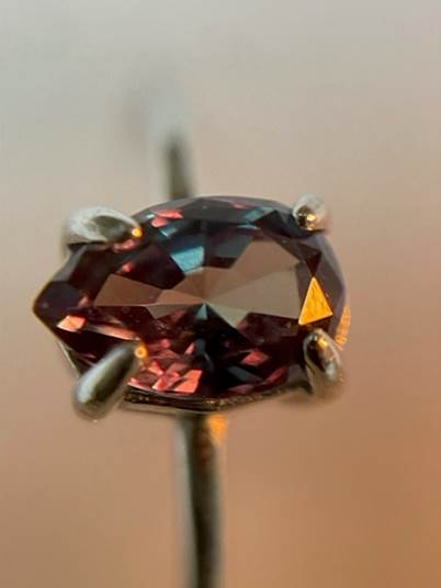 心なしか、白熱光で照らしたときのカラーチェンジもより鮮やかになったような気がします。(必ずしも気のせいではなく、比較対象となる金や銀の台に石が載っている方が、色の違いを認識しやすいのだろうと思っています)