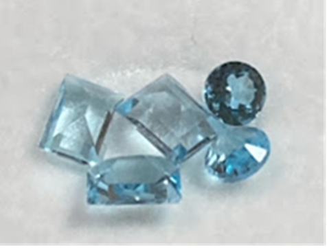 無色のトパーズを放射線照射で青く変化させたものです。色の濃さによって以下の3つに分かれ、概ね濃くなるにつれて価格が上がります。