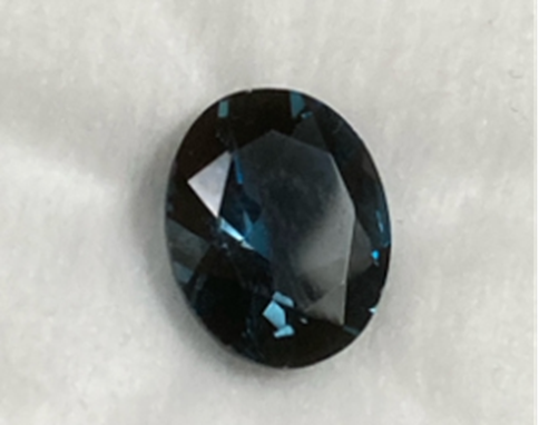 スカイブルートパーズよりもずっと濃い色です。ブルーサファイアを思わせますが、純粋な青というよりわずかに灰色の混ざったような若干暗めのニュアンスが魅力的です。