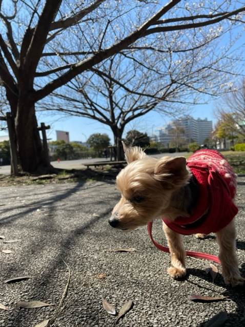 公園の桜はまだ少し蕾がほどけたくらいでした。