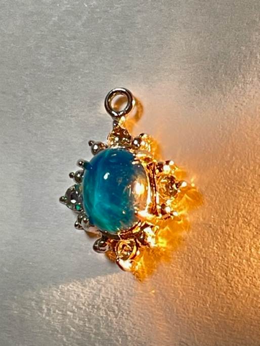隙間時間を使って、ブルーアパタイトをシルバーのペンダントトップにセットしました。