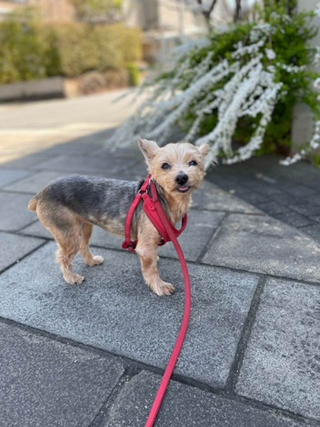 今朝はずいぶん暖かくなったので、ルビーもセーターなしでお散歩です。