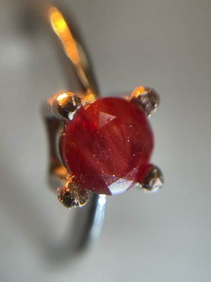 4月1日にキュービックジルコニアの中石を外した指輪の空枠には、検討の末、アンデシン(赤)をセットすることにしました。