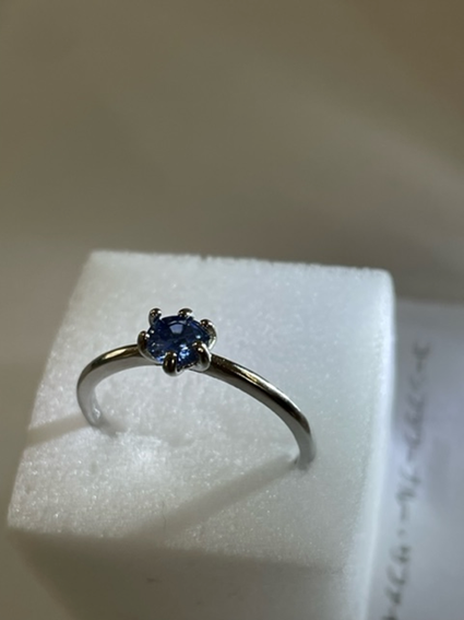 空枠としてネット購入した、一回り小さい指輪には、コーンフラワーブルーのブルーサファイアをセットしました。