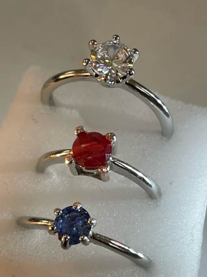 手持ちのルースを2つ、指輪に加工しました。