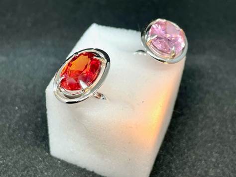 1つ目のペアは、ピンクサファイアとオレンジピンクサファイア(合成)です。